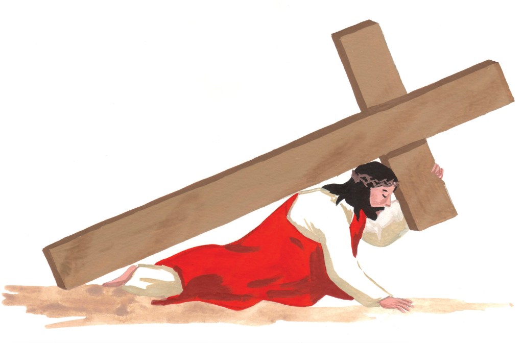 Jésus tombe sous le poids de la croix